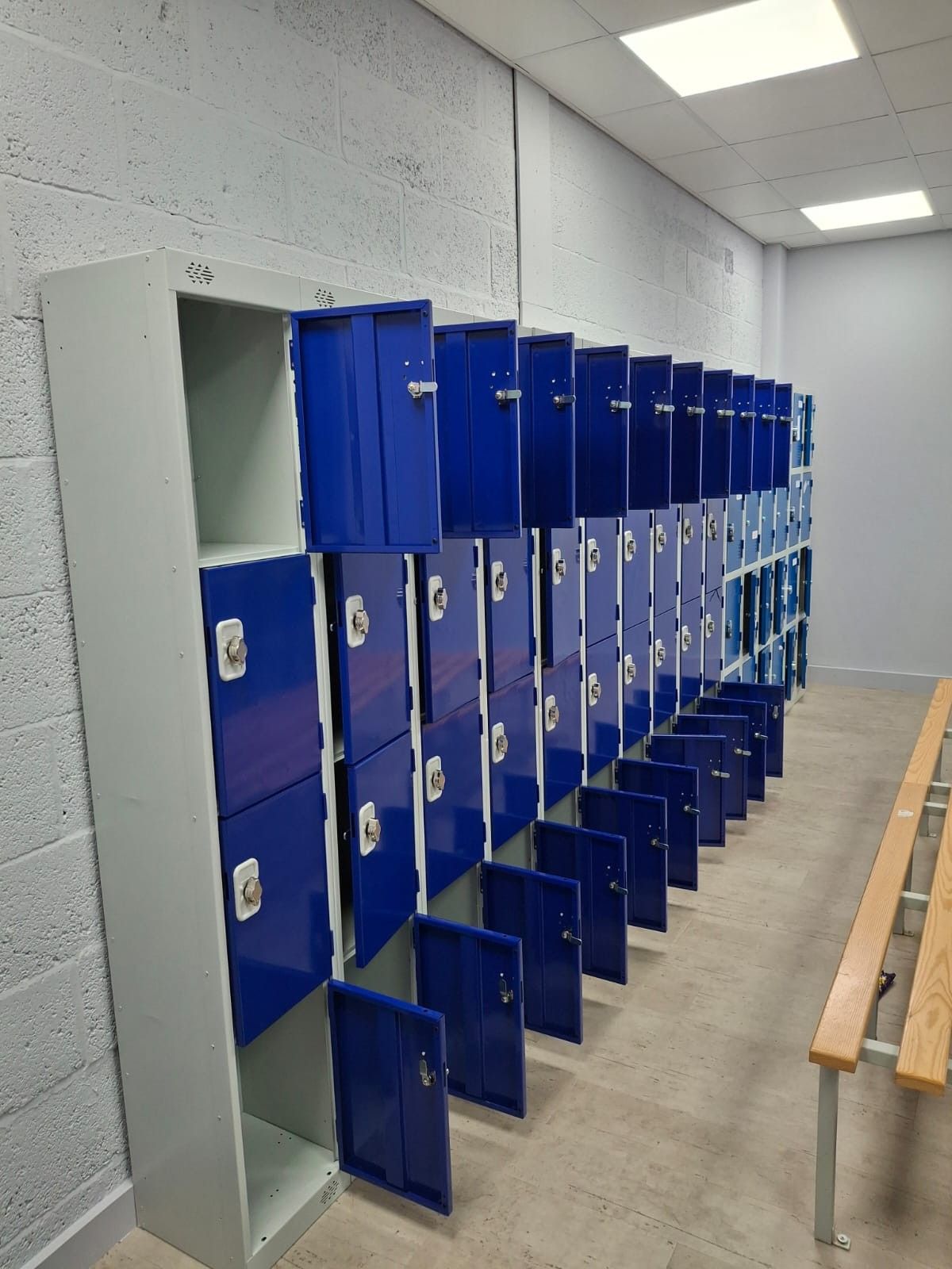 Installation of dressing room lockers, barres and wall mounted bins to Performing Arts school in Milton Keynes